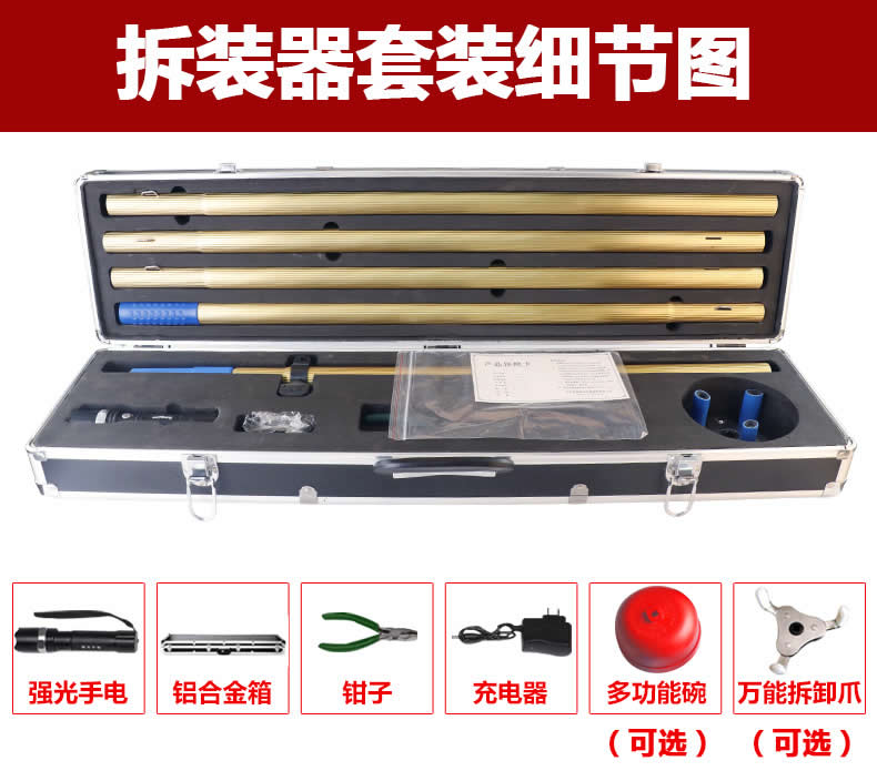 本品自帶手電功能,桿子可以拉長長可以達到8米,避免拆鋁格柵即可拆裝頂板上的探測器。大面積車庫先裝底座,后裝設備時,可發(fā)揮單人操作施工效率到。大面積拆裝清洗也極其方便。